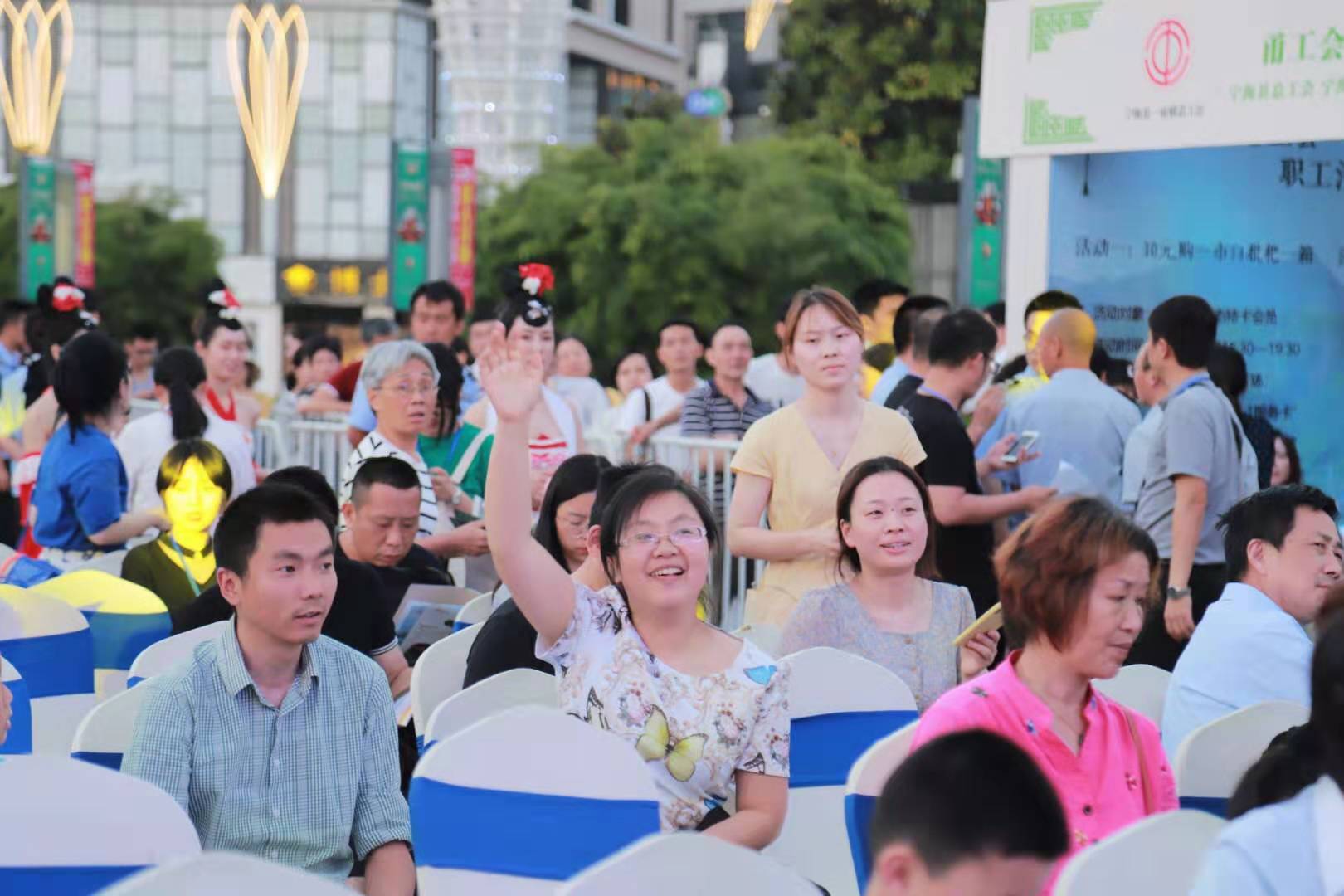 当天下午,广场上还举行了关爱自闭症儿童枇杷现场拍卖会和一市镇总工会“甬工惠”10元购优惠活动。
